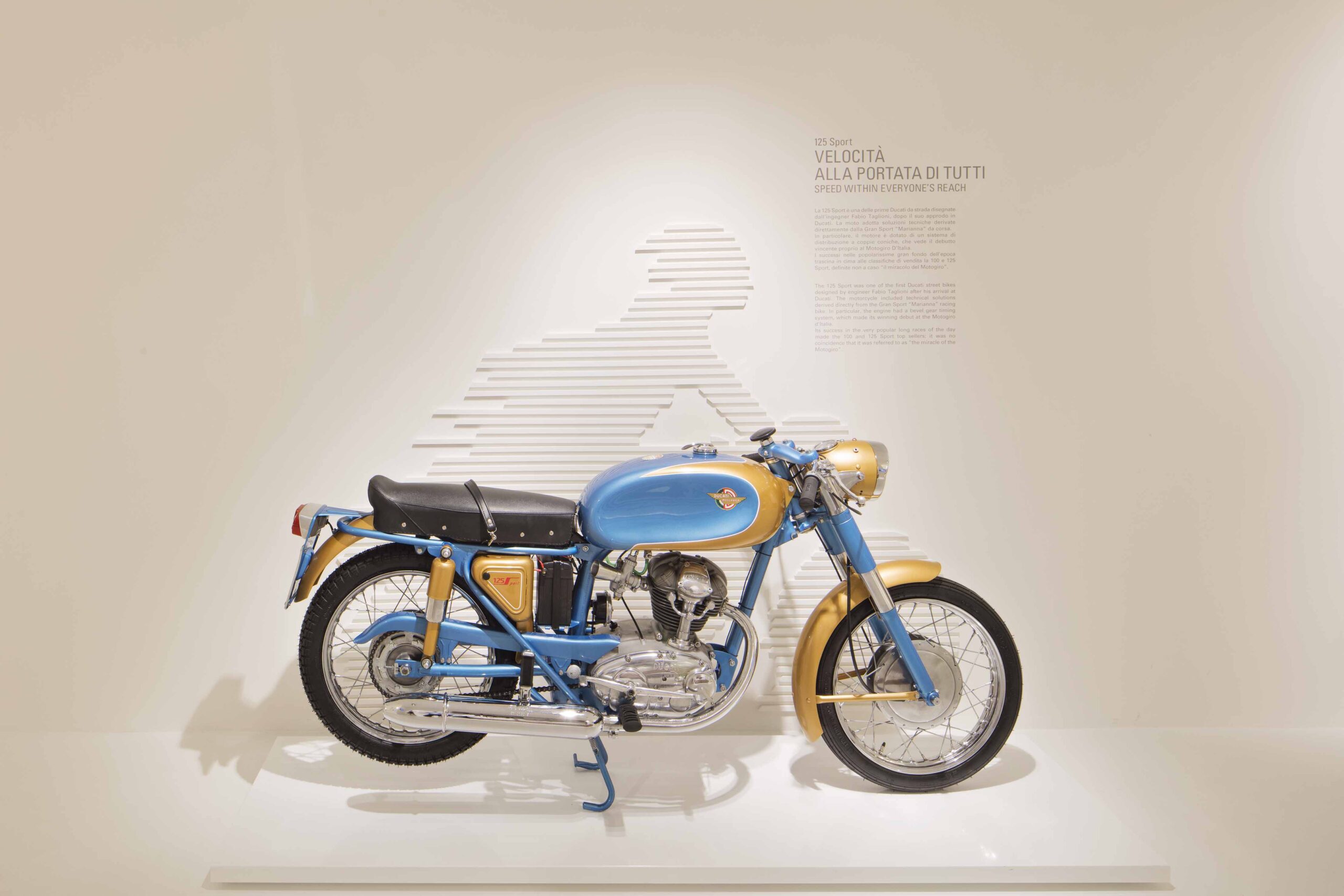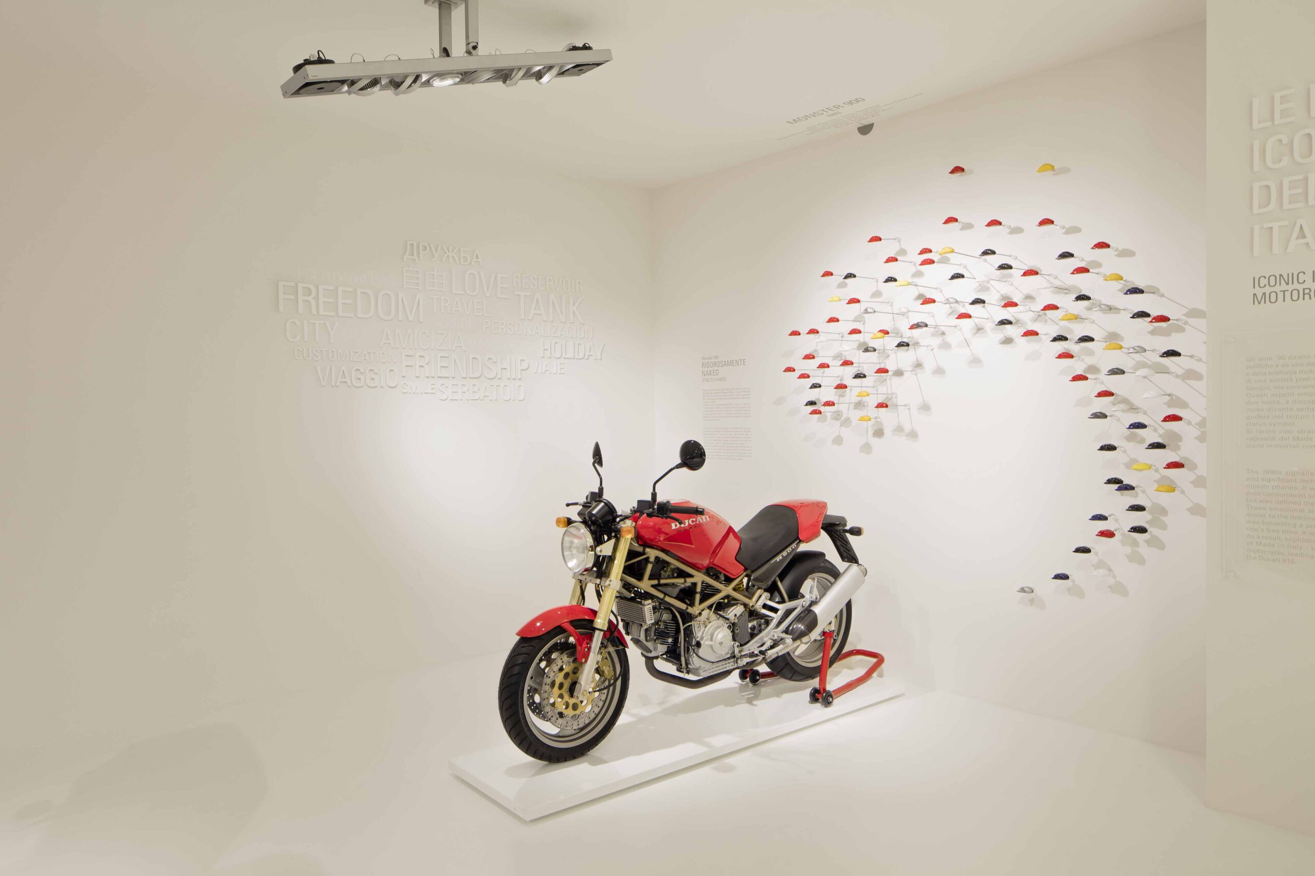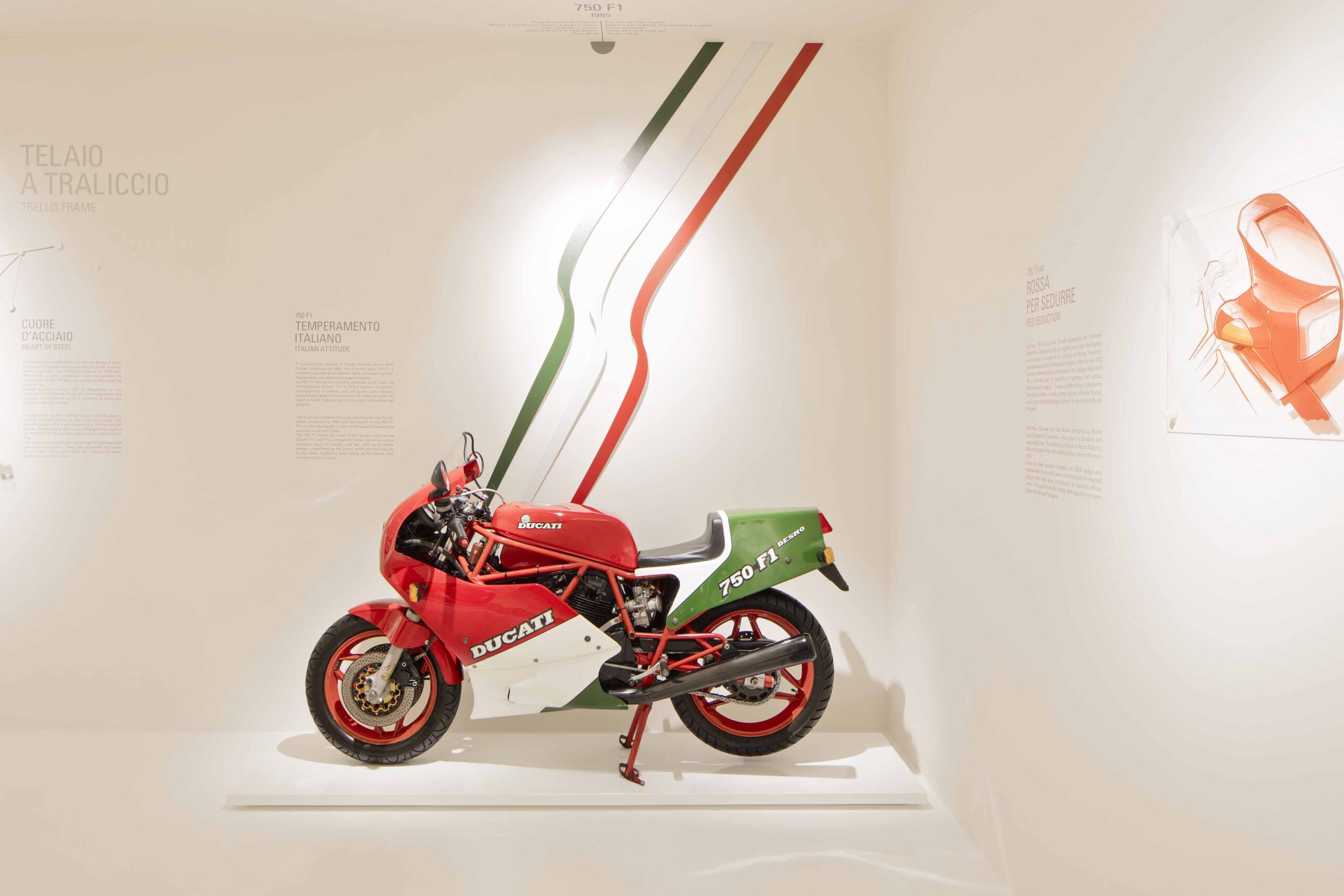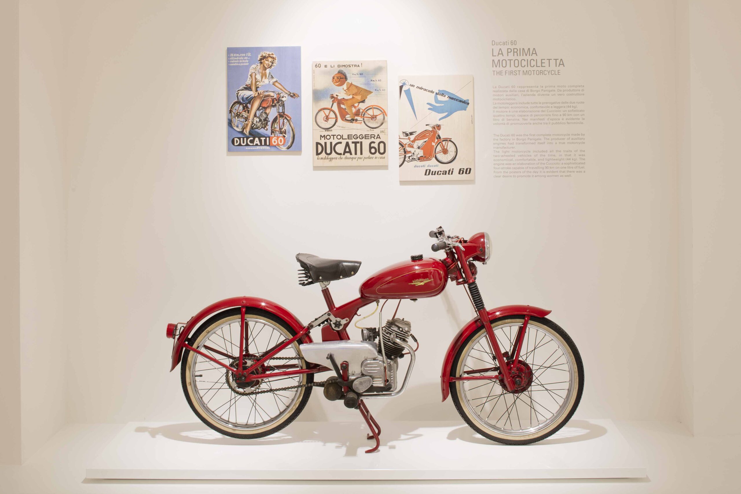 L’esposizione raccoglie numerosi modelli delle motociclette prodotte dalla Ducati e altri diversi oggetti.
